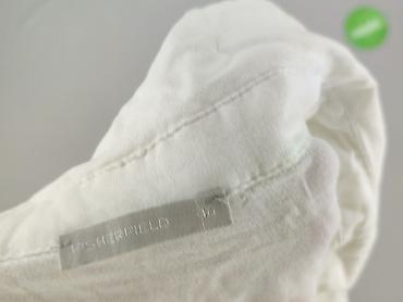 Biała koszula damska z krótkim rękawem, r. M - Fason: prosta, lekko luźna, z rozcięciami po bokach u dołu - Zapięcie: na guziki z przodu - Kołnierz: szeroki, spiczasty - Rękaw: krótki - Detale: dw...