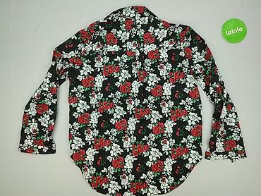 Damska koszula z długim rękawem, rozmiar M. Czarna baza z efektownym, wielobarwnym nadrukiem kwiatowym rozmieszczonym z przodu, na rękawach i z tyłu. Klasyczny kołnierzyk, zapięcie na czarne guziki...