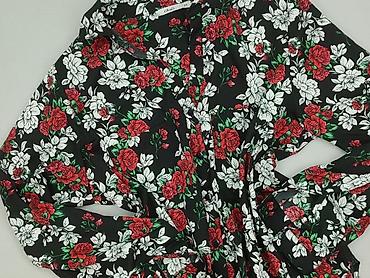 Koszula damska T&R, rozmiar M - Wzór: czarna w kwiaty (zielone liście, kwiaty w odcieniach czerwieni, różu i bieli) - Krój: zapinana na guziki z przodu, długi rękaw z mankietami na guziki, lekko z...