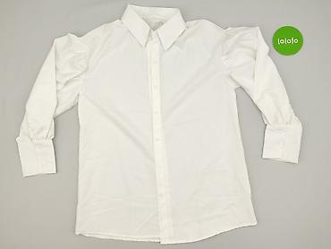 Biała koszula damska z długim rękawem - Krój: klasyczna koszula zapinana na guziki, kołnierzyk, mankiety na guziki, delikatnie zaokrąglony dół. - Rozmiar z metki: XL. - Skład materiału: 95% polies...