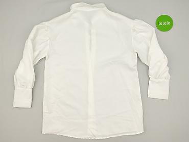 Biała damska koszula z długim rękawem i kołnierzykiem - Rozmiar: M (metka widoczna na zdjęciu) - Krój: klasyczny, lekko taliowany - Zapięcie: rząd dekoracyjnych guzików w formie perełek na przodzi...