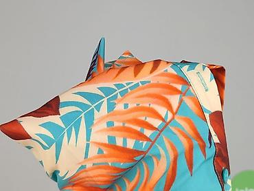 - Wzór/kolor: wyrazisty, tropikalny print w odcieniach turkusu, pomarańczu i bordo na jasnym tle.