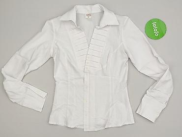 Biała damska koszula z długim rękawem i kołnierzykiem - Rozmiar: M (metka widoczna na zdjęciu) - Krój: klasyczny, lekko taliowany - Zapięcie: rząd dekoracyjnych guzików w formie perełek na przodzi...