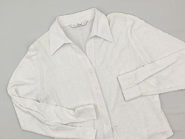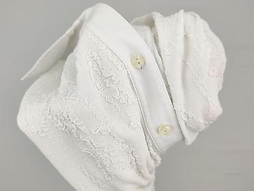 Damska koszula biała z długim rękawem - Klasyczny kołnierzyk, zapięcie na rząd drobnych guzików z przodu - Asymetryczne rozcięcia po bokach - Dekoracyjne, duże metaliczne guziki po bokach oraz na ...