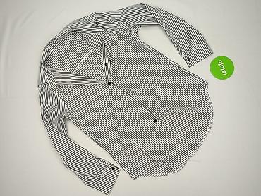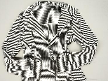 Koszula damska w paski H&M - Model: kopertowa bluzka koszulowa z kołnierzykiem - Wzór: czarno-białe paski układane pod różnymi kątami (przód ukośny, tył pionowy, mankiety poziome) - Rękawy: długie...Rozmiar: