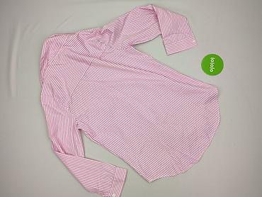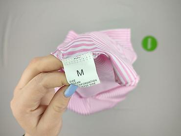 Koszula damska w paski, rozmiar M - Fason: koszula z kołnierzykiem, częściowo zapinana na guziki z przodu - Rękawy: długie, mankiety zapinane na guziki - Wzór: szerokie pionowe pasy w kolorach róż...