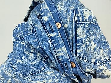 Koszulowa kurtka/katana jeansowa SHEIN - Model: koszula z długim rękawem zapinana na guziki - Materiał: 100% bawełna (metka na zdjęciu) - Kolor i wykończenie: niebieski denim z efektem sprania/aci...