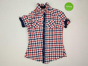 Damska koszula KULA, rozmiar 36. - Krój: taliowana, z kołnierzykiem, zapinana na guziki na całej długości - Rękawy: krótkie, bufiaste z marszczeniem i gumką przy mankiecie - Wzór: klasyczna krata ...