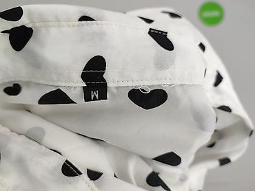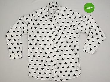 Koszula damska z długim rękawem, wzór w serca - Rozmiar: M (metka “M”) - Krój: zapinana na guziki z przodu, kołnierzyk klasyczny, mankiety na guziki, delikatnie taliowana - Kolor/wzór: biała w nad...Rozmiar: