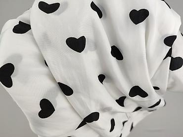 Koszula damska z lekkiego, półprzezroczystego szyfonu. - Kolor: biel z nadrukiem serc w odcieniach niebieskiego i jasnoszarego (motyw w drobne cętki). - Krój: swobodny, prosty, z delikatnymi zakł...