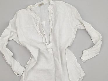 Koszula damska Reserved, rozmiar M - Krój: luźny, krótki fason (boxy), zapinana na guziki - Rękaw: krótki z podwinięciem - Kołnierzyk: klasyczny - Kolor: ecru/śmietankowy - Materiał: mieszanka lnu ...