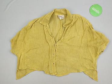 Żółta koszula damska z krótkim rękawem - Fason: luźny, zapinana na guziki z przodu - Kołnierzyk klasyczny, lekko zaokrąglony dół - Krótkie rękawy typu cap - Jedna dekoracyjna kieszonka na piersi z...