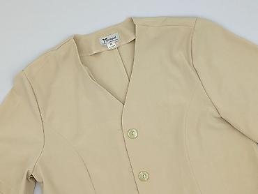 Beżowa koszula/żakiet damski KRAER POL – rozmiar 42 - Krój: lekko taliowany, zapinany na 4 duże guziki z przodu - Rękaw: krótki - Kołnierz: klasyczny, wykładany - Kieszenie: dwie naszywane kieszen...