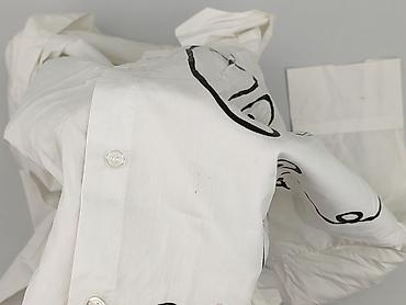 Biała damska koszula z nadrukiem artystycznych twarzy