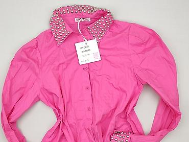 Różowa koszula/tunika damska New Collection - Fason oversize, zapinana na guziki z przodu - Długi rękaw z mankietami na guzik - Kołnierzyk stójka - Jedna naszywana kieszeń na piersi - Zaokrąglony,...