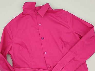 Różowa koszula damska z długim rękawem - Krój: koszula zapinana na guziki z kołnierzykiem; z tyłu odcięcie w pasie i delikatne marszczenie, lekko zaokrąglony dół. - Rozmiar: S (na metce). - Materi...
