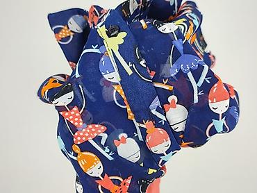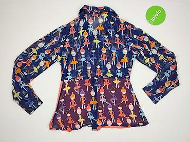 Koszula damska z długim rękawem, rozmiar M. Nadruk patchwork imitujący denim w odcieniach granatu i błękitu. Klasyczny kołnierzyk, zapięcie na guziki z przodu, mankiety zapinane na guziki. Delikatn...
