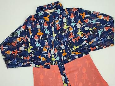 Damska koszula z długim rękawem, zapinana na guziki. Ciemnogranatowa/czarna baza z wyrazistym, artystycznym nadrukiem w odcieniach beżu, brązu, karmelu i oliwki: motywy kwiatowe i geometryczne (roz...Stan: