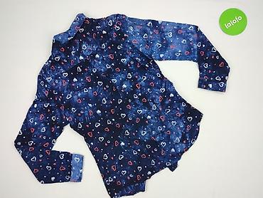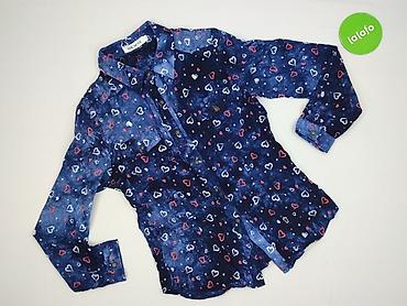 Damska koszula w drobne serduszka - Fason: zapinana na guziki, z kołnierzykiem, długi rękaw - Kolor: granatowy z białym, drobnym nadrukiem serduszek - Kieszenie: dwie naszywane na piersi - Materia...Stan: