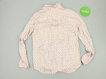 Damska koszula w grochy, rozmiar S. Jasnoróżowa baza z czarnym drobnym wzorem. - Fason: koszula zapinana na guziki z przodu, zaokrąglony dół - Kołnierzyk klasyczny - Długi rękaw zakończony mankie...