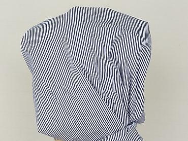 Koszula damska Lustrin, rozmiar M - Wzór: granatowo-białe paski (pionowe i ukośne), efekt lekkiego marszczenia/crinkle - Fason: dłuższa koszula zapinana na guziki, zaokrąglony dół, długi rękaw z m...