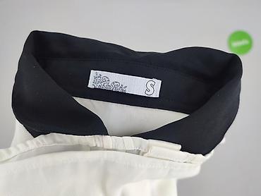 Biała koszula damska, rozmiar S. - Fason prosty, elegancki - Charakterystyczny, zaokrąglony kołnierz typu Peter Pan - Zapięcie na czarne guziki z przodu; pojedyncze guziki również przy mankietach ...
