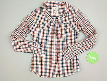 Damska koszula w kratę, rozmiar S - Fason: klasyczna koszula zapinana na guziki - Rękaw: długi, mankiety na guziki - Kołnierzyk: klasyczny - Wzór: drobna krata w odcieniach bieli, granatu i różu -...