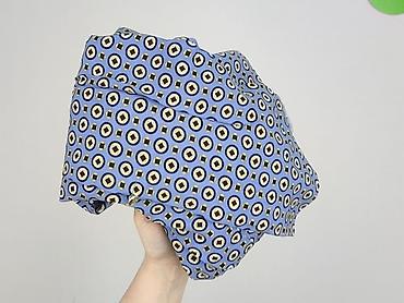- Wzór geometryczny: niebieskie tło z okręgami i rombami w odcieniach czerni, bieli i musztardy