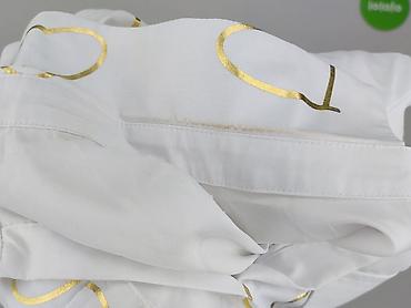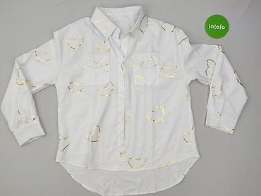 Biała damska koszula z długim rękawem, rozmiar XL. Model z kołnierzykiem, zapięciem na guziki i dwiema naszywanymi kieszeniami na piersi. Całość zdobi nadruk złotych serc, który dodaje elegancji i subtelnego połysku. Tył z delikatnie wydłużonym dołem. Materiał: 100% poliester (lekki, gładki, łatwy w pielęgnacji).