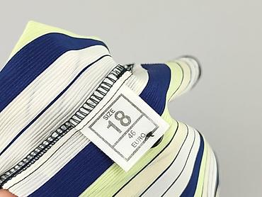 - Wzór i kolory: pionowe paski w odcieniach granatu, limonki i ecru/bieli – optycznie wyszczuplają i wydłużają sylwetkę.