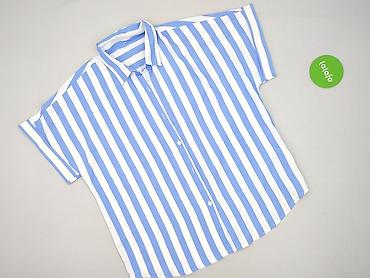 Damska koszula w paski, rozmiar XL - Krój: luźny, z opuszczonym ramieniem i krótkim rękawem - Kołnierz: stójka - Zapięcie: pełny rząd guzików z przodu - Wzór: pionowe pasy w kolorze szałwiowej zie...