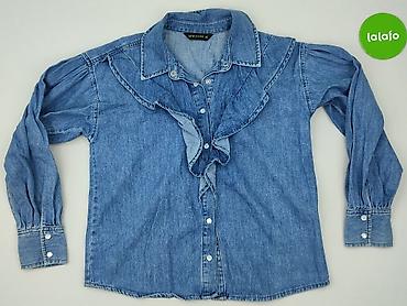 Jeansowa koszula damska z długim rękawem - Materiał: denim (bawełna jeansowa), jasny sprany odcień „acid wash” - Krój: klasyczny kołnierzyk, zapinana na napy zatrzaskowe z przodu - Rękawy zakończo...