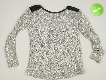 Sweter damski, dzianinowy, szary melanż - Klasyczny splot warkoczowy z przodu; boki i rękawy w grubszym, prążkowanym splocie - Dekolt w kształcie litery V z elastyczną, prążkowaną listwą - Długie r...