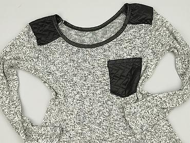 Dziewczęca bluzka swetrowa z dzianiny, melanż czarno‑szary - Fason: prosta, lekko wydłużona, z delikatnym marszczeniem/zwężeniem w talii - Rękaw: 3/4 - Dekolt: okrągły - Wzór: melanż (przeplatana ...