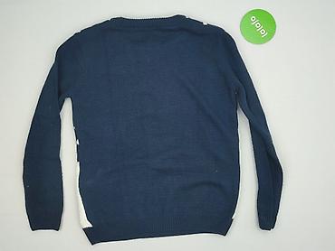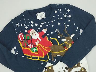 Sweter świąteczny z pingwinem – dziecięcy - Kolor: intensywny niebieski - Motyw: duży pingwin w czapce Mikołaja z pomponem; na całym przodzie ozdobne czarne „śnieżki” - Krój: klasyczny, okrągły de...