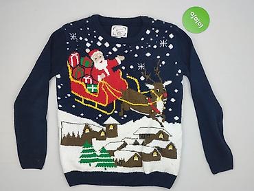 Sweter świąteczny damski Christmas Shop – granatowy w białe „płatki śniegu”, z dużym motywem Mikołaja z przodu. Najważniejsze cechy: - Marka: Christmas Shop (metka widoczna na zdjęciu) - Krój: kla...