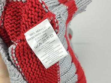 Sweter damski w paski - Krój: klasyczny, dopasowany, długie rękawy - Dekolt: w serek (V-neck) z prążkowaną lamówką - Wzór: szerokie, poziome pasy w kolorach czerwonym, czarnym i białym - Dzianina:...