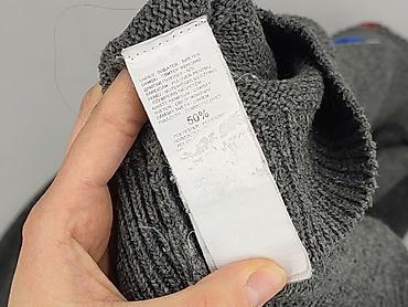 - Fason: klasyczny sweter z okrągłym dekoltem, długim rękawem, ściągacze przy mankietach i dole