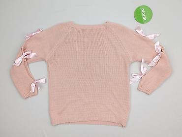Sweter dziewczęcy, różowy, z cekinami - Fason: klasyczny, prosta linia, długi rękaw - Dekolt: okrągły - Dzianina: miękka, pętelkowa/„bouclé” z delikatnym połyskiem - Wykończenie: na całej powierzc...