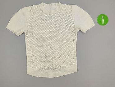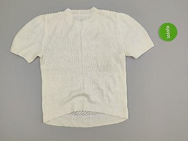Biała damska bluzka/sweterek z dzianiny ażurowej - Kolor: czysta biel - Fason: luźny, z lekko opuszczoną linią ramion; krótkie rękawy - Dekolt: okrągły - Splot: ażurowy z geometrycznym wzorem (deli...