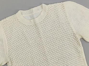Sweter damski z krótkim rękawem, ecru/śmietankowy - Fason: prosty, lekko luźny, długość do bioder - Rękaw: krótki, wykończony ściągaczem - Dekolt: okrągły - Splot: drobny warkoczowy (kablowy) na c...