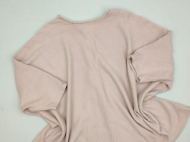 Damski sweter oversize z dzianiny prążkowanej - Kolor: pudrowy róż - Krój: luźny, nietoperz (szerokie ramiona, zwężane rękawy) - Rękawy: długie - Dekolt: łagodnie wycięty przy szyi - Materiał: 50%...