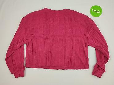 Sweter damski w intensywnym różowym kolorze z dekoracyjnymi perełkami. - Fason: dzianinowy sweter z długim rękawem, dekolt typu crew neck (ściągacz), raglanowe rękawy - Wzór/przeszycia: ażurowe, p...Stan: