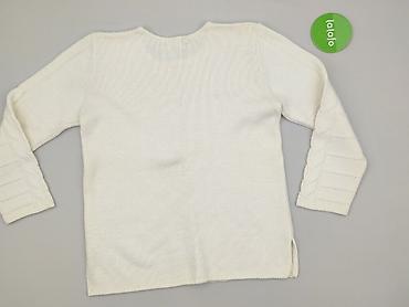 Sweter damski, kremowy, dzianinowy - Krój: klasyczny, luźny - Dekolt: okrągły - Rękawy: 3/4 z elastycznymi ściągaczami - Wzór splotu: mieszanka reliefowych pasów i ażurowych/prążkowanych tekstur n...