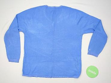 Sweter damski „Made in Italy” w kolorze jeansowego błękitu. - Fason: luźny, z obniżoną linią ramion, długie rękawy - Dekolt: w serek (V-neck) - Dzianina: miękka, prążkowana, sprężysta - Skład mate...