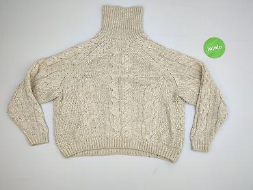 Sweter damski z golfem – kremowy, warkoczowy splot - Fason: ciepły sweter z szerokim golfem/kołnierzem, długie rękawy, ściągacze przy mankietach i u dołu - Wzór/tekstura: klasyczny warkoczowy splo...