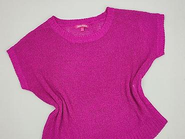 Różowy, damski sweter z krótkim rękawem - Rozmiar: M (na metce) - Skład: 100% akryl - Krój: swobodny, raglanowe rękawy - Rękaw: krótki - Dekolt: półokrągły, wykończony ściągaczem - Dół i mankiety:...