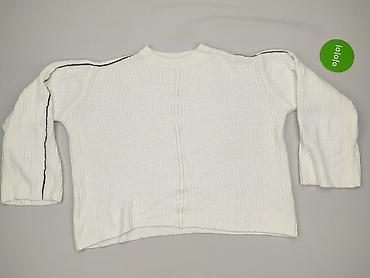 Sweter damski, biały, dzianinowy - Krój: klasyczny, z długim rękawem - Dekolt: okrągły, wykończony kontrastową czarną lamówką - Splot: wyrazisty, ażurowo–waflowy, miękki i elastyczny - Detal: mała ...