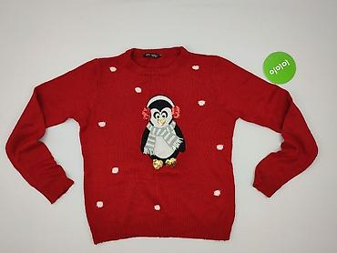 Sweter świąteczny damski Ckh Clockhouse, rozmiar L - Kolor: czerwony z białymi śnieżynkami - Nadruk/przód: pingwin w przebraniu choinki, aplikacje 3D (kolorowe pomponiki), cekinowa gwiazdka i napi...