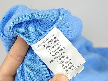 Sweter damski w kolorze niebieskim - Krój: klasyczny, z okrągłym dekoltem (crew neck) - Długość: standardowa, długie rękawy - Ściągacze przy dekolcie, mankietach i u dołu - Materiał (z metki): 45%...Rozmiar: